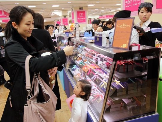 | Nhiều chị em mua quà tặng cho nửa kia tại cửa hàng Mitsukoshi, Tokyo ngày 13/2.