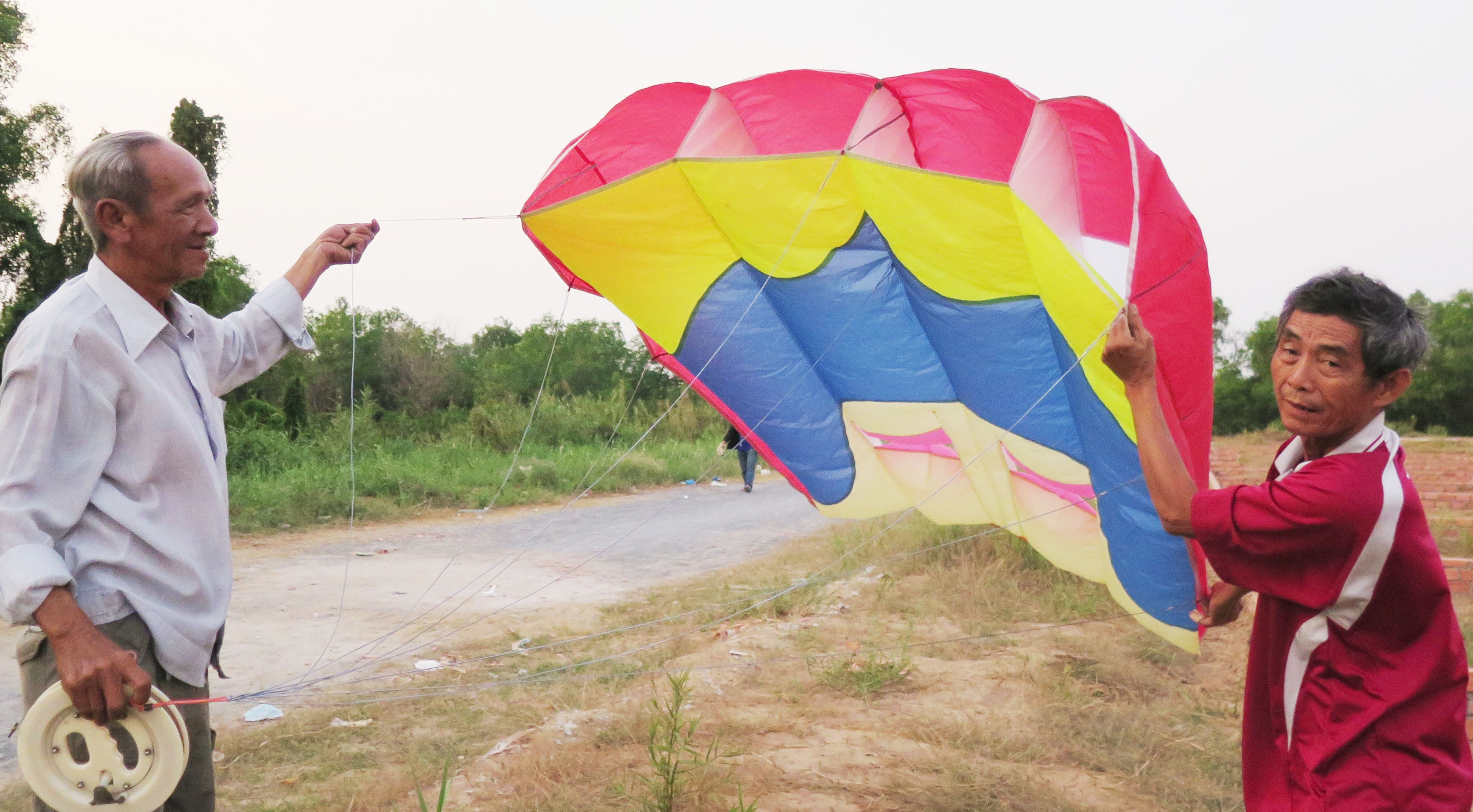 "Con diều lớn này thì dây cột phải là 12 ly, khi bay lên, hàng chục người mới có thể kiểm soát được nó", ông Vân nói và cho biết cánh đồng ở huyện Hóc Môn quá nhỏ, không thể thả được diều khổng lồ. Nơi đây chỉ dành cho trẻ con thả diều nhỏ.