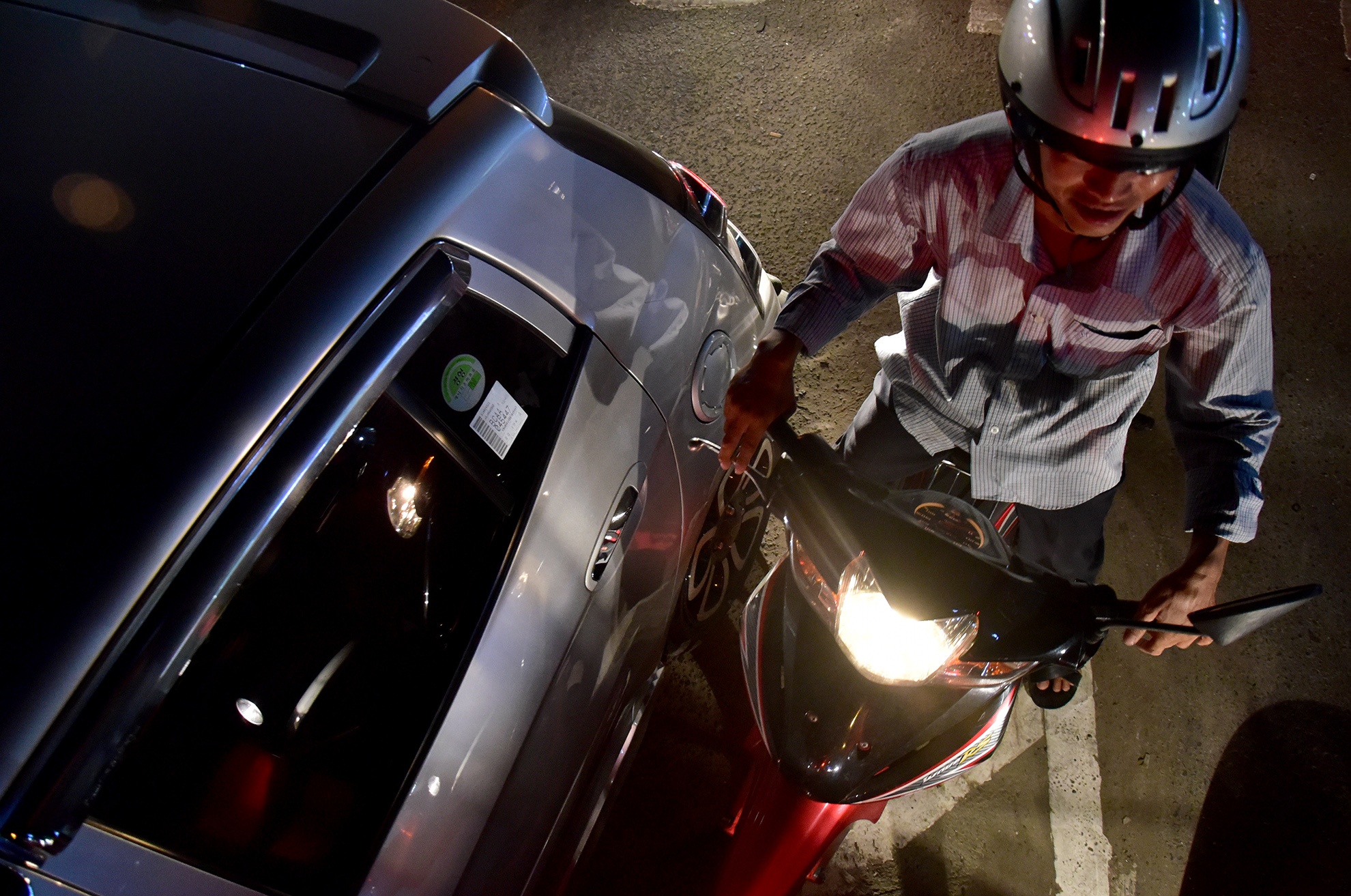 | Người đi xe máy len lỏi qua mọi khe hở để thoát khỏi vòng xoay, tìm hướng về nhà. |