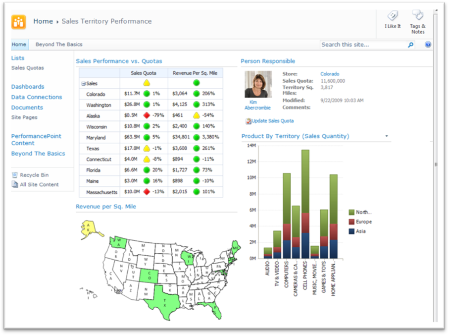 | Báo cáo được tạo bằng PerformancePoint Services trong SharePoint (2010/2013). |