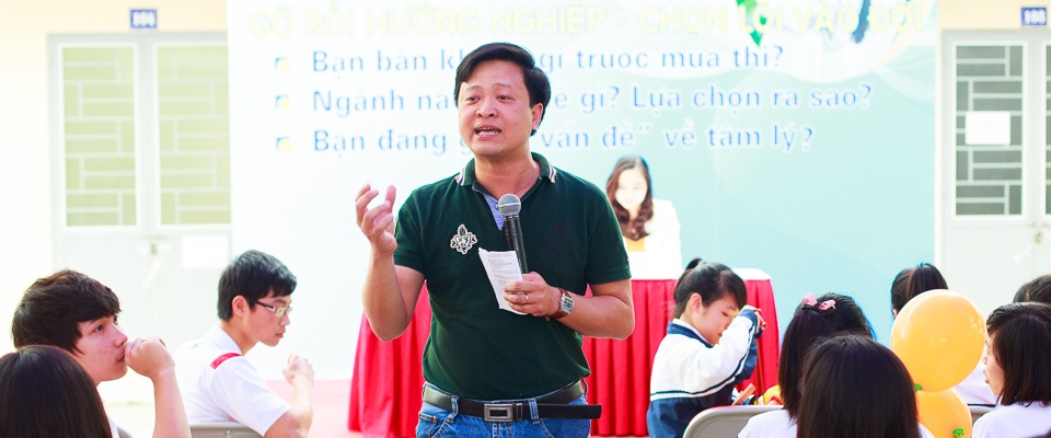 | Tiến sĩ Phạm Mạnh Hà tư vấn nghề nghiệp cho học sinh. Ảnh: Đại học Khoa học Xã hội & Nhân văn. |