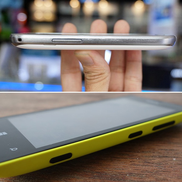 Có một điểm khá trùng hợp là cả 2 sản phẩm nói trên đều không có gì thay đổi về ngoại thất nếu so sánh với mẫu điện thoại đời trước của nó. Với Lumia 525, bạn có một chiếc máy 4 inch, vỏ sau làm bằng nhựa polycarbonate nhám. Vỏ sau này thiết kế dạng dual-shot – đồng nghĩa với việc bạn có thể chọn mua một loạt vỏ khác màu để thay đổi khi cần thiết. Máy có 5 góc vuông vức, vỏ sau liếm sát lên màn hình, không có cạnh bên.