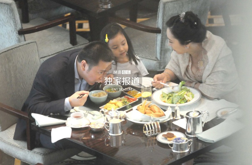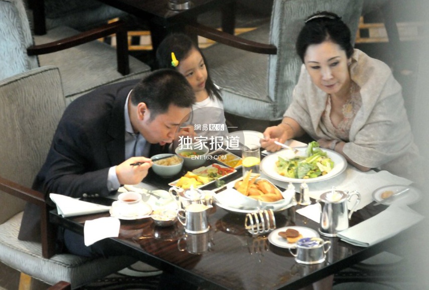 | Ngày 25/10, Huỳnh Hữu Long - doanh nhân người Singapore, chồng Triệu Vy - và cô con gái Tiểu tháng 4 bị bắt gặp đi ăn tại nhà hàng của một khách sạn 5 sao ở Thượng Hải. Ngồi cùng bàn với cha con Tiểu tháng 4 là một người phụ nữ trung niên, lạ mặt chứ không phải nữ diễn viên xinh đẹp. |