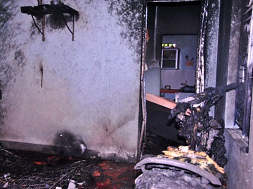 | Buồng ngủ của 2 vợ chồng, trong đó có chiếc xe máy tay ga, đã bị thiêu rụi. |