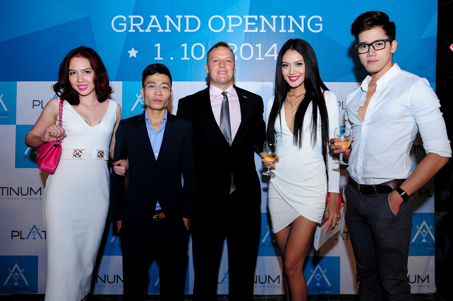 | Người đẹp Quanh Đi (thứ hai từ phải sang) tươi tắn đi sự kiện. |