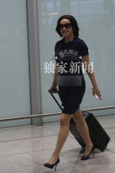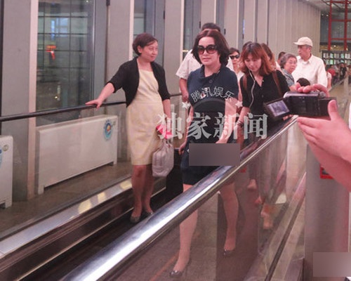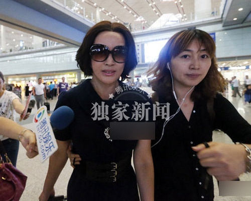 | Bà bị phóng viên "bao vây" ở sân bay để chất vấn tin đồn của chồng. |