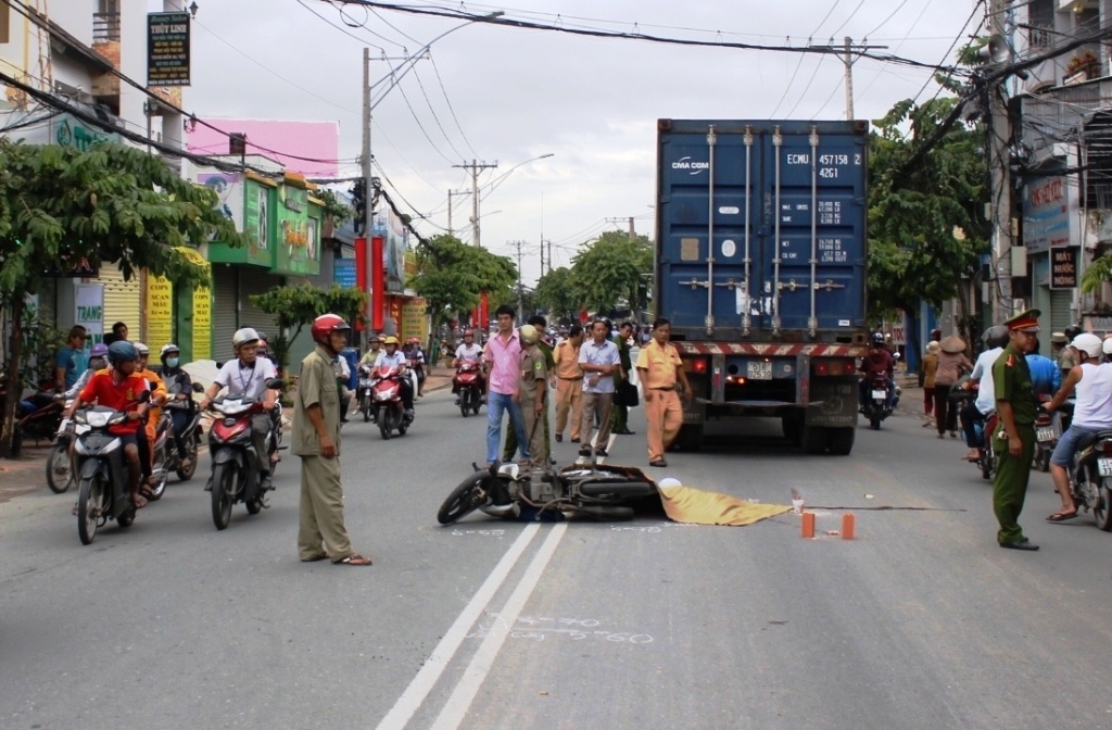 Khi vừa qua giao lộ với đường Dân Chủ khoảng 50 m, xe máy chở đôi vợ chồng trẻ xảy ra va chạm với ôtô đầu kéo do tài xế Bùi Hữu Niệm (37 tuổi, quê Tiền Giang) điều khiển lưu thông cùng chiều.