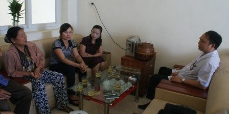 | Ông Lê Tiến Toàn, Giám đốc Bệnh viện Đa khoa TP. Thanh Hóa, làm việc với gia đình chị Oanh. |