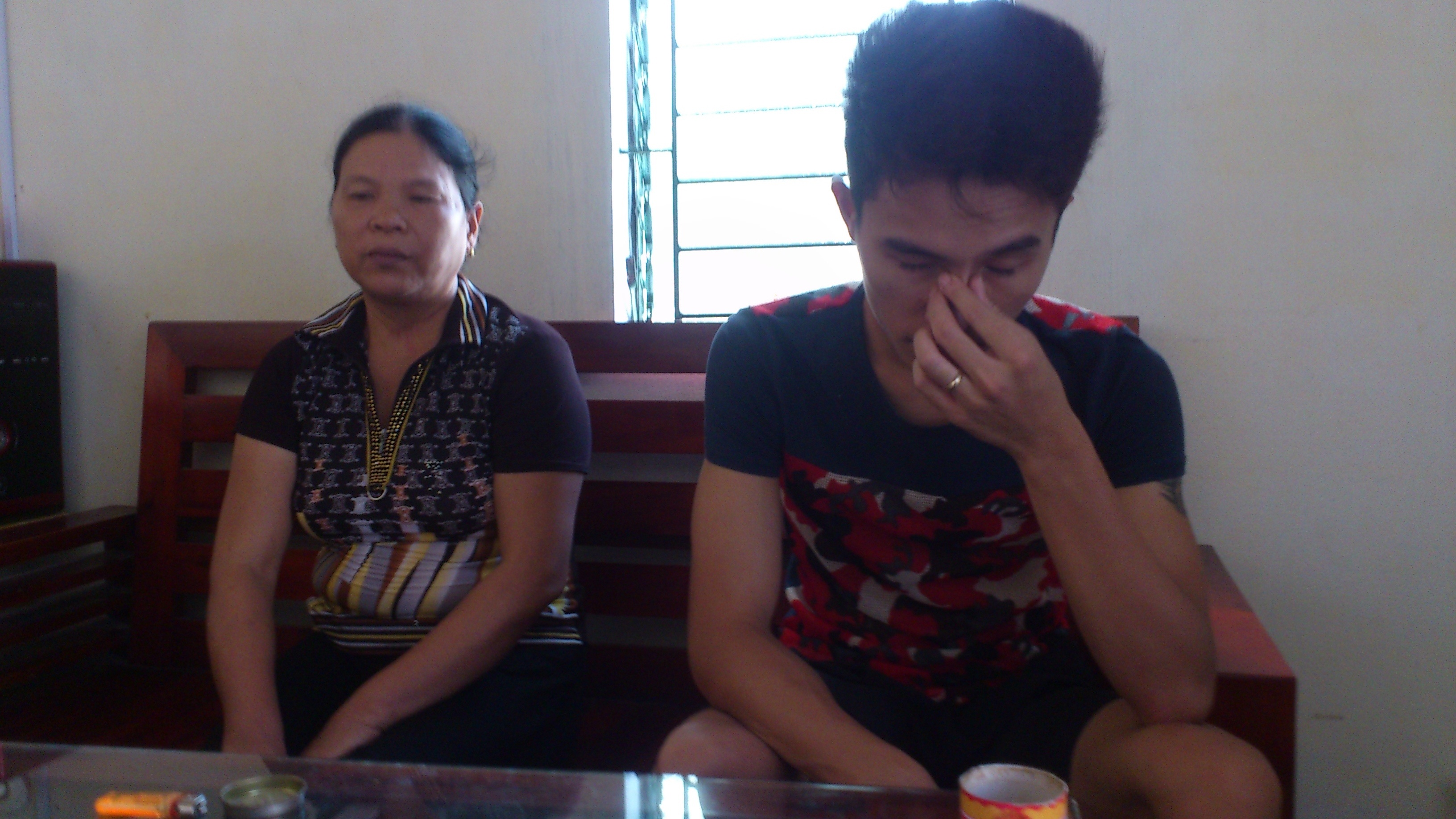 | Anh Trọng (ngồi bên phải) lo lắng trước khi bị nhiều người kỳ thị, xa lánh. “Nếu chuyện này không được giải thích ổn thỏa, tôi đành đưa vợ con bỏ quê đi lang thang kiếm sống”. |