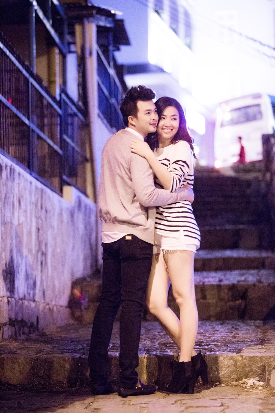 | Mới đây, Lê Khánh và chồng đã chọn Đà Lạt làm điểm chụp ảnh cưới. Thời gian buổi tối rảnh rỗi, cả hai tranh thủ dạo phố đêm. Công việc của cả Lê Khánh và Tuấn Khải đều rất bận rộn, hiếm khi được thảnh thơi để đi du lịch. Vì vậy, những khoảnh khắc này thực sự quý giá đối với cặp đôi. Đây cũng là lần hiếm hoi cả hai chụp ảnh cùng nhau. Trước ngày lên xe hoa, Lê Khánh không còn ngần ngại giới thiệu đến công chúng những hình ảnh mới, thể hiện tình cảm bên chồng sắp cưới. |