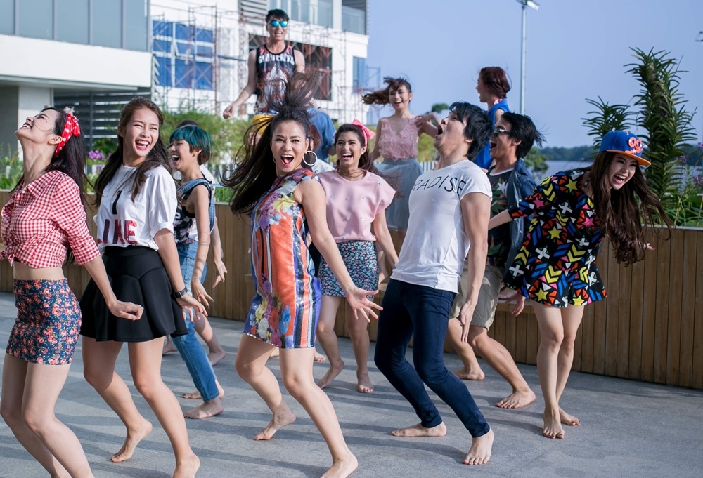 | Cô tích cực tự sáng tạo ra màn vũ đạo vui nhộn và không ngần ngại nhảy nhót tưng bừng cùng dàn trai xinh, gái đẹp của showbiz Việt như Đông Nhi, Minh Hằng, Khả Ngân, Chi Pu, Quang Đăng... |