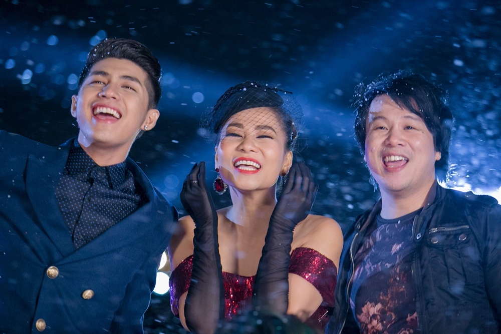 | Phần quay hình kết thúc với khoảnh khắc hoành tráng với đại cảnh Thu Minh diện váy dạ hội lộng lẫy, cười đùa cùng Thanh Bùi và Noo Phước Thịnh dưới trời khung cảnh đầy bông tuyết lãng mạn và rực rỡ. |