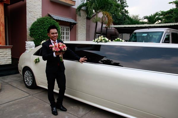 | Siêu xe Cadillac CTS Limousine dùng để rước dâu của anh. Ảnh: Tin 247. |