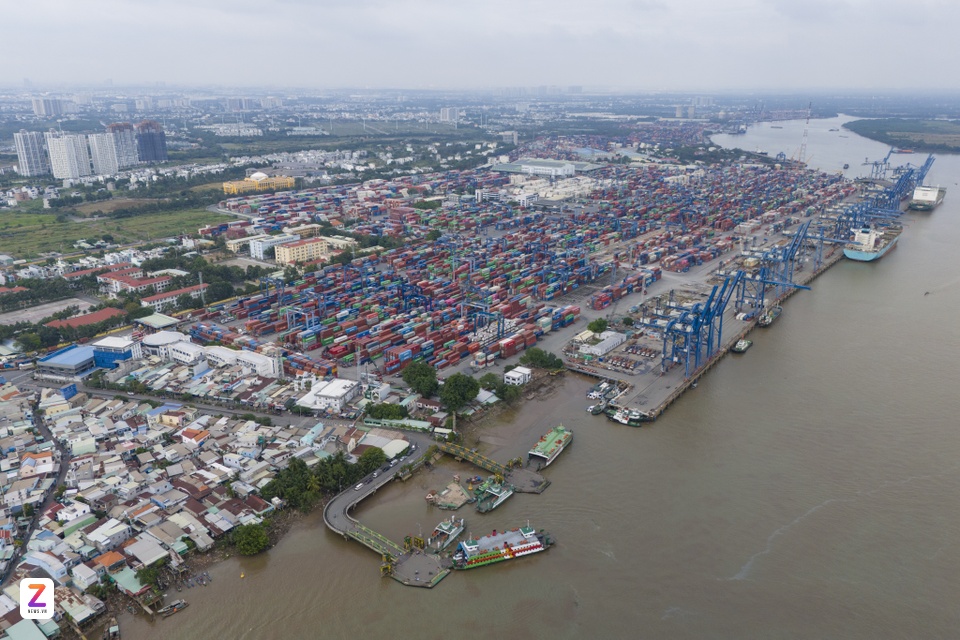 Khu vực dự kiến xây cầu Cát Lái vượt sông Đồng Nai gần các cụm cảng Cát Lái, Đồng Nai, Bình Dương cũ. Ảnh: Quỳnh Danh. |