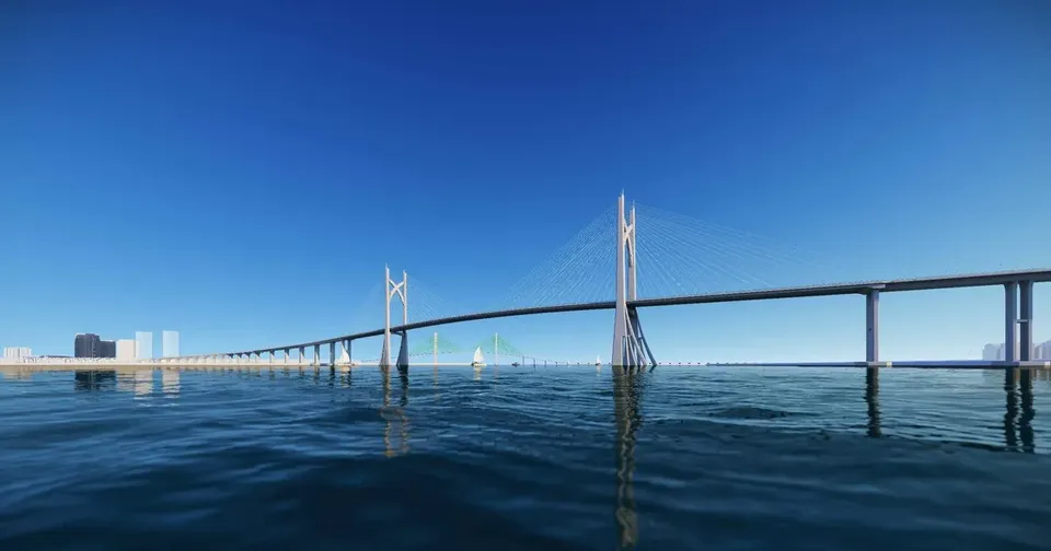 Cầu Cần Giờ vượt sông Soài Rạp, nối Cần Giờ với khu vực Nhà Bè. Ảnh: Sở Xây dựng TP.HCM. |