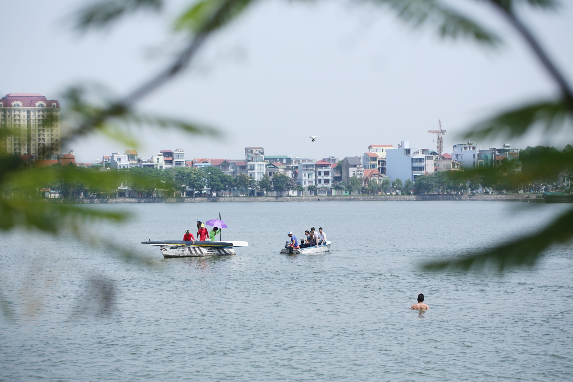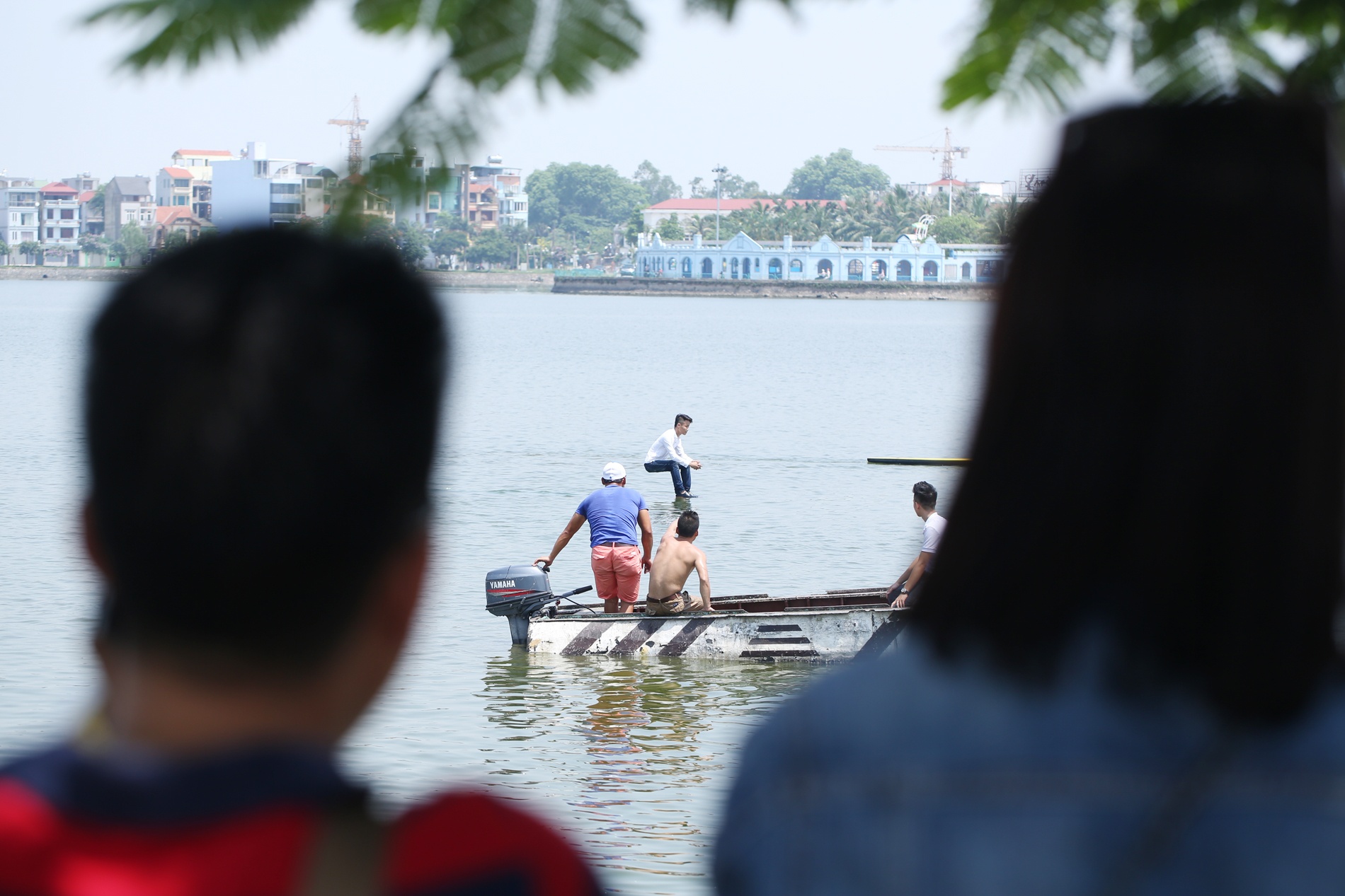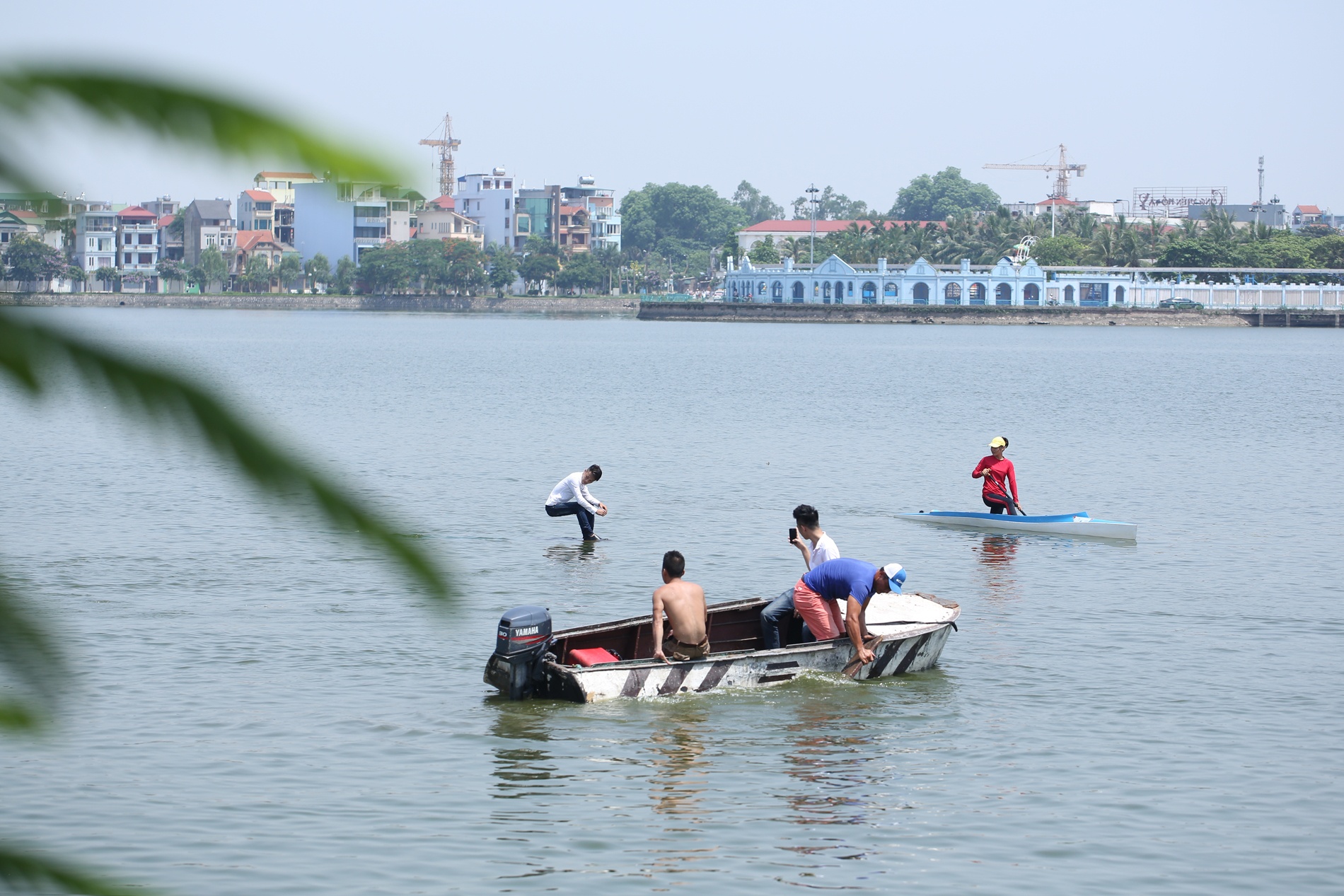 | Sau đó, Trần Đình Quý ngồi lơ lửng nhiều phút giữa hồ. |