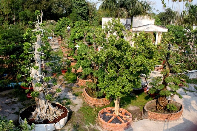 Vườn kiểng của ông Võ Phi Sơn (65 tuổi, nghệ danh Ba Hùng) nằm ở ngay trung tâm thành phố Tây Ninh. Trong vườn có hơn 100 gốc khế, duối, nguyệt quế, vạn niên, tùng, mai vàng...với giá trung bình 2 tỷ đồng một cây. Ảnh: Zen Nguyễn. |