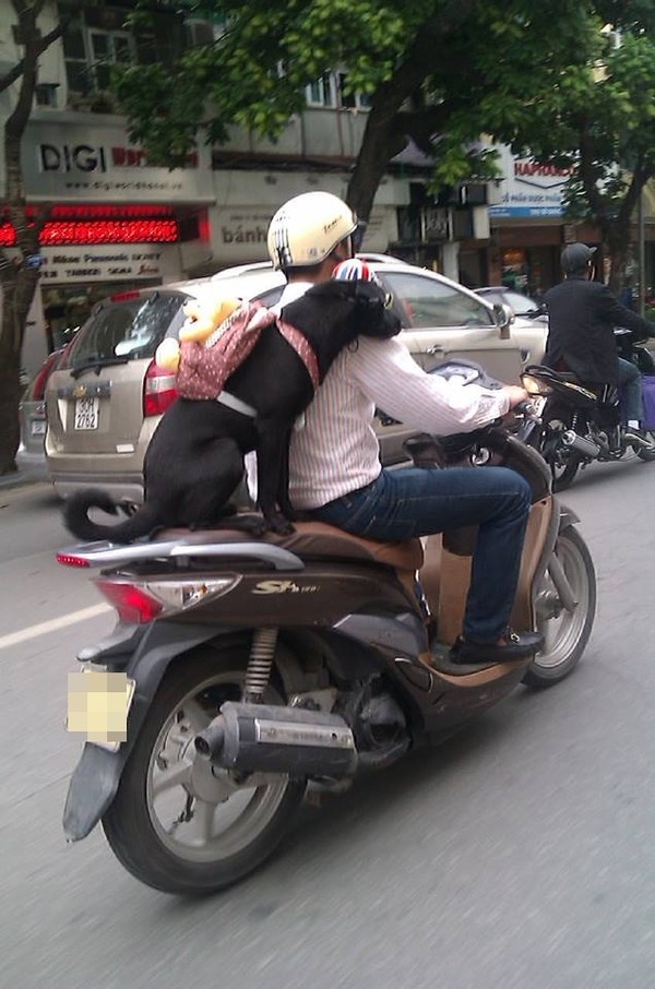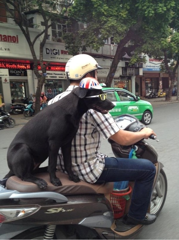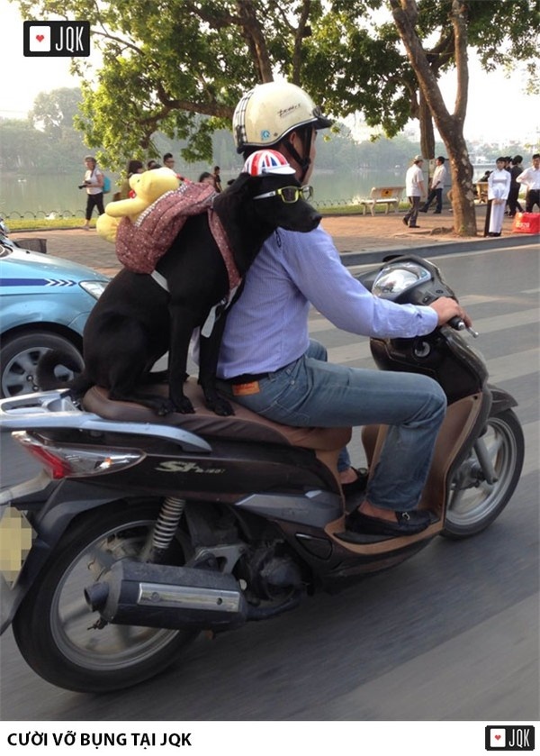 | Những ngày qua, trên một số trang tin, diễn đàn có đăng tải bức ảnh chụp một chú chó rất dễ thương trên đường phố Hà Nội. Chú chó này được chủ nhân cho ngồi phía sau xe máy, nhưng điều đặc biệt hơn cả là nó được trang bị cho đầy đủ mũ bảo hiểm, kính, ba lô đeo sau lưng khiến bất cứ ai bắt gặp cũng đều cảm thấy rất thích thú. |