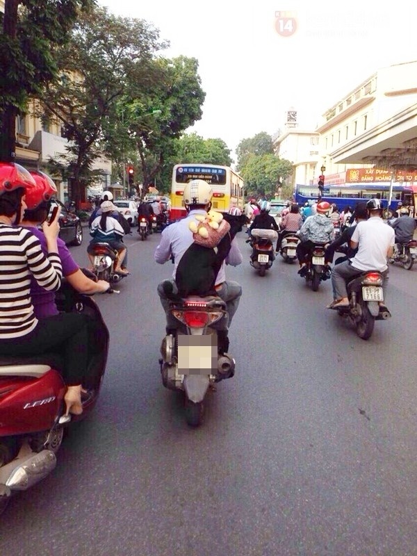 | Bức ảnh này được một người đi đường chụp lại khi vô tình bắt gặp chú chó này được chủ nhân của mình chở đi dạo ở khu vực Bờ Hồ. Ngay khi được đăng tải, bức ảnh đã lập tức được cư dân mạng truyền tay nhau với tốc độ chóng mặt. |