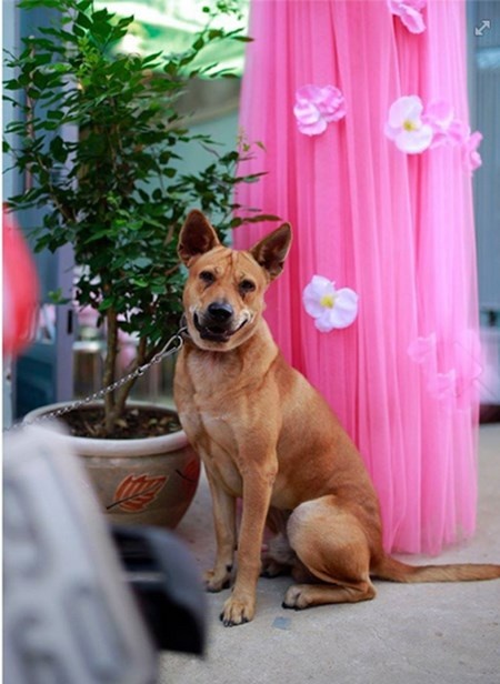 | Chú chó tên Ki được nhà cô dâu xem như thành viên trong gia đình. |