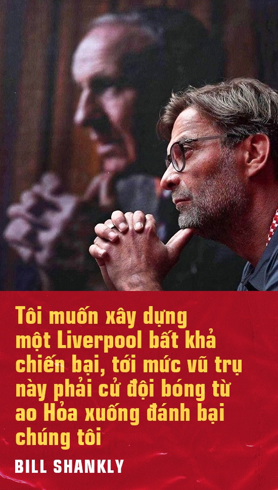 Trong quá khứ, cố HLV huyền thoại Bill Shankly từng bày tỏ tham vọng về Liverpool như sau: “Tôi muốn xây dựng Liverpool bất khả chiến bại, tới mức vũ trụ này phải cử đội bóng từ Sao Hỏa xuống đánh bại chúng tôi”.