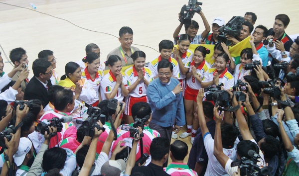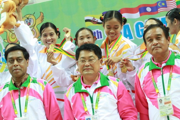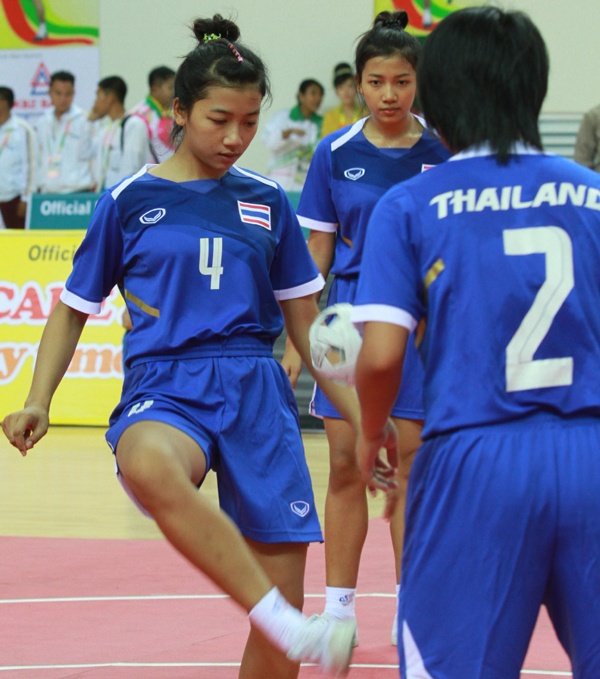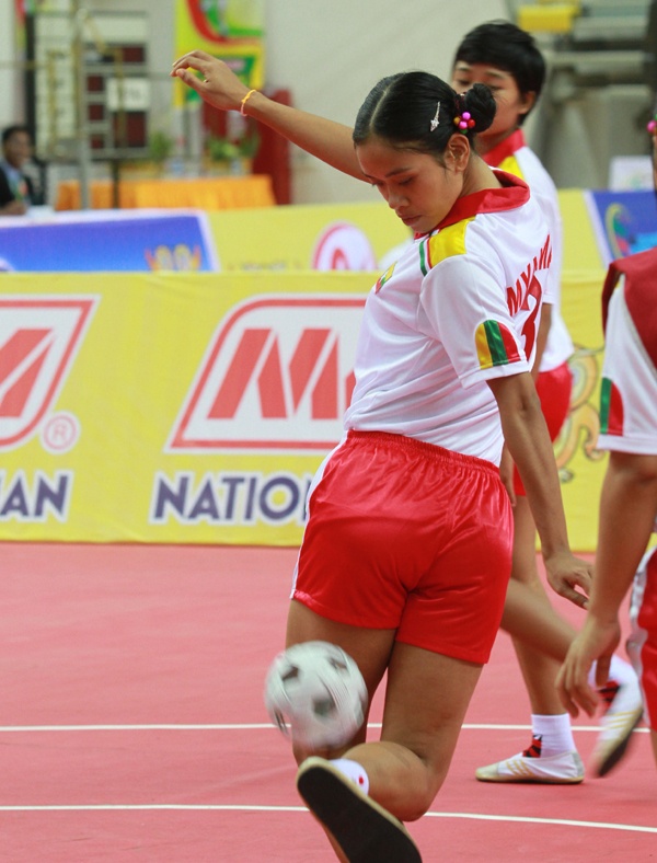 Sau 3 hiệp biểu diễn chinlone, nữ Myanmar thắng nữ Thái Lan với điểm số 534 - 375, giành HCV đầu tiên tại SEA Games 27. Ở nội dung giành cho nam, Nam Myanmar thắng Nam Thái Lan với tỷ số 660- 404. Như vậy, nước chủ nhà đã ẵm trọn 2 HCV chinlone.