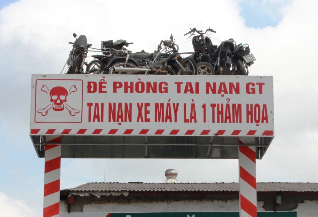 Giữa năm 2014, ông Định tiếp tục xin giấy phép dựng biển cảnh báo TNGT thứ 2 với nội dung: “Đề phòng tai nạn xe máy”, cùng gần chục chiếc xe máy nát bét đặt trên một bệ đỡ.