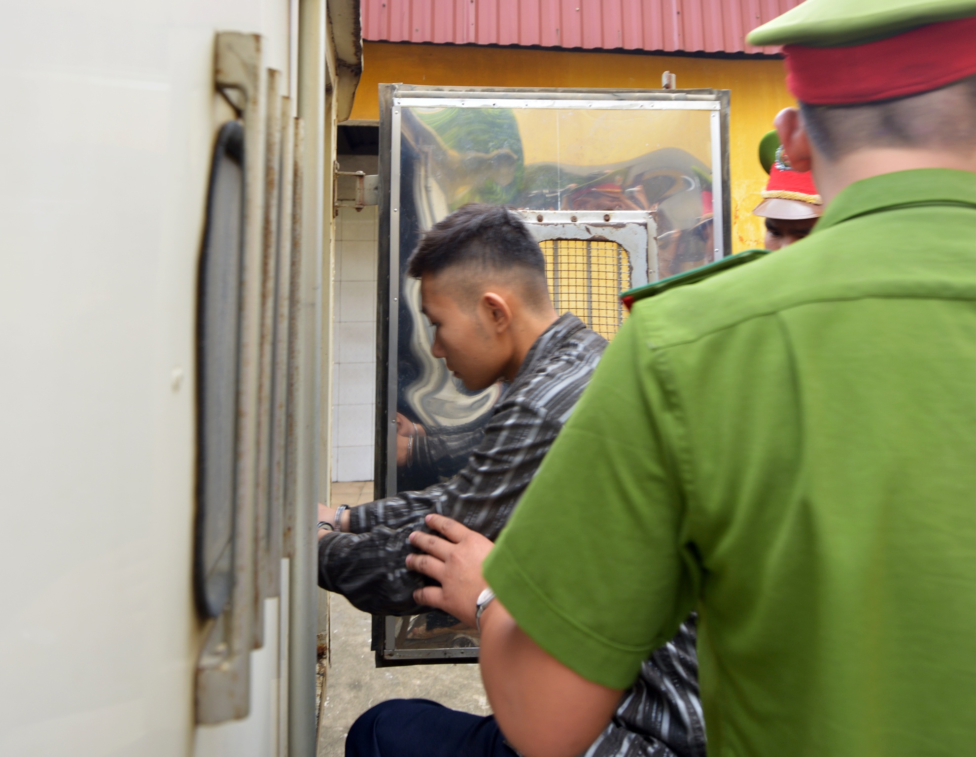 | Trước khi bước vào xét xử, bị cáo được cảnh sát tư pháp mở khóa còng tay. |