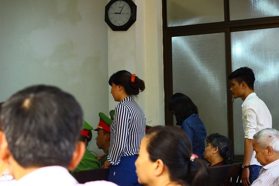 | Trong bộ quần áo sơ mi sọc cắm thùng, bà Nguyễn Thị Hằng (vợ của Tường) lặng lẽ ở hàng ghế gia đình bị cáo. Thiếu phụ giữ nguyên đơn kháng cáo xin lại nửa giá trị chiếc ôtô để trang trải cuộc sống khó khăn và bù đắp cho phía bị hại. |