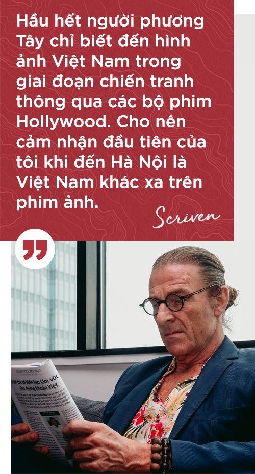 Ông Scriven đã sống và làm việc tại Việt Nam gần 30 năm, chứng kiến quá trình lột xác ngoạn mục của đất nước về cả đời sống lẫn kinh tế. Đến giờ, ông vẫn nhớ như in những trải nghiệm đầu tiên của mình tại Việt Nam, những trải nghiệm đã khiến chàng thanh niên hơn 20 tuổi khi ấy quyết định gắn bó lâu dài với dải đất hình chữ S.