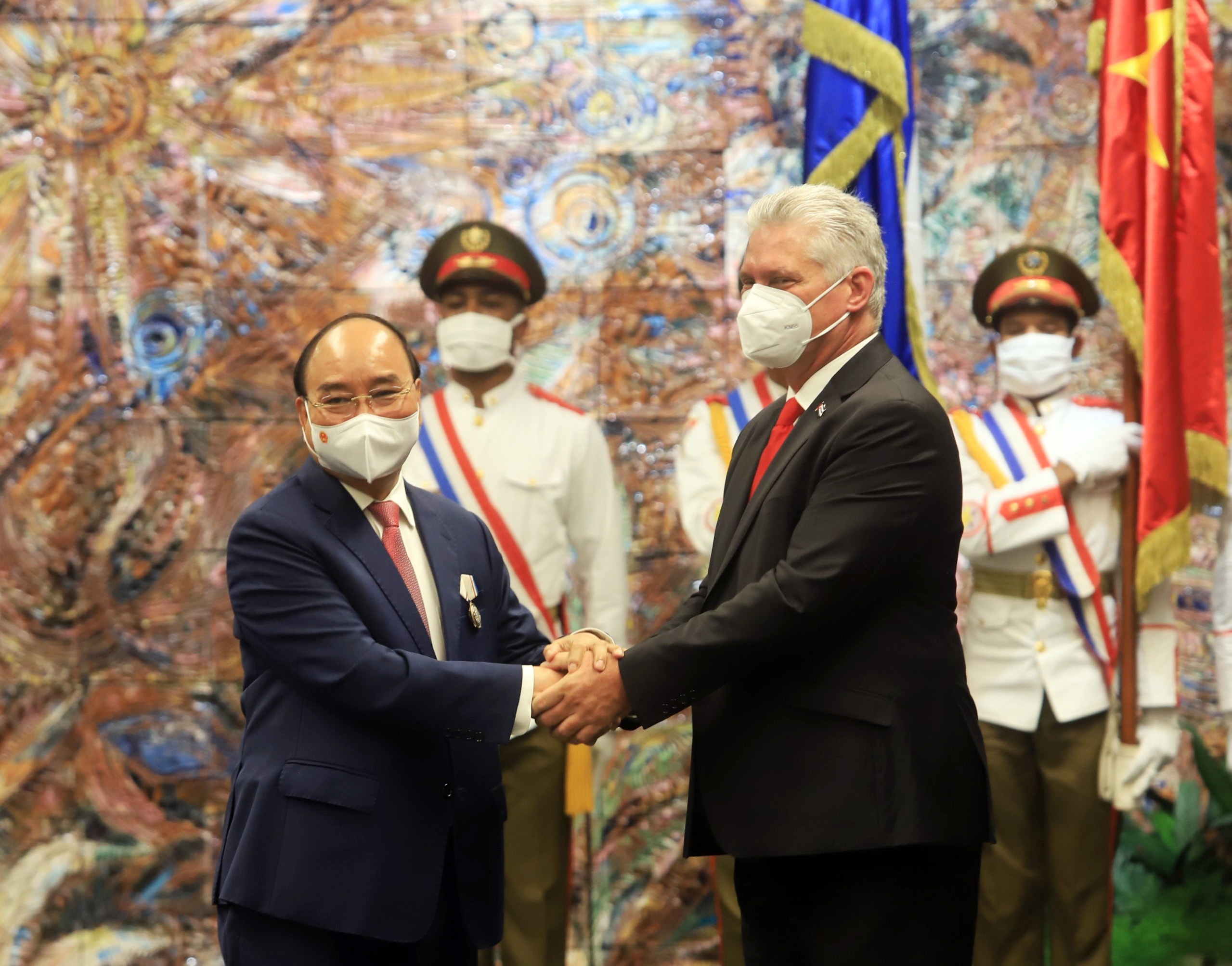 Chia sẻ vinh dự và tự hào khi nhận Huân chương Jose Marti - Huân chương cao quý nhất của Đảng và Nhà nước Cuba - Chủ tịch nước Nguyễn Xuân Phúc khẳng định quyết tâm, nỗ lực xây dựng, vun đắp mối quan hệ hai nước.
