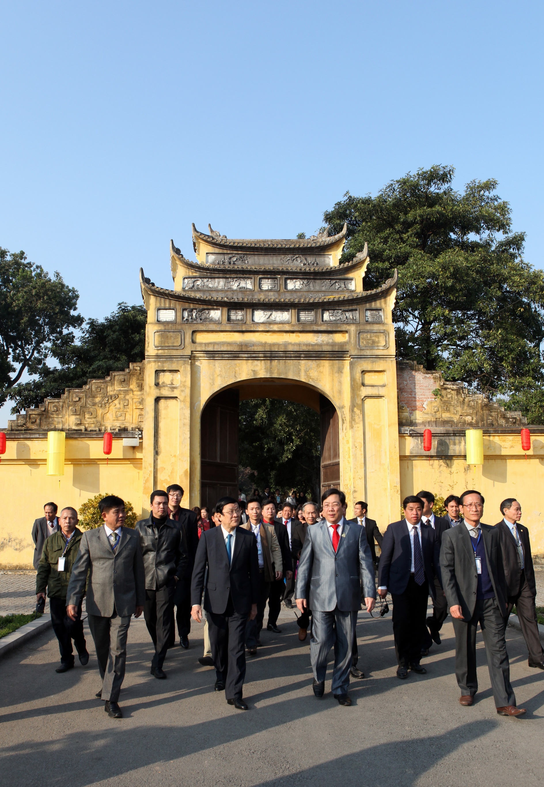| Sau các nghi lễ tâm linh, Chủ tịch nước và phái đoàn di chuyển đến Hoàng thành Thăng Long, nơi sẽ diễn ra sự kiện 'Xuân quê hương - Lạc hồng vinh hiển' vào buổi tối cùng ngày. |