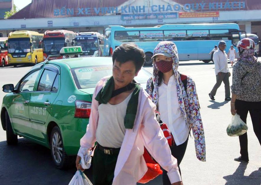 | Thí sinh và người nhà đi thi dưới cái nắng 40 độ C tại Nghệ An. Ảnh: Phạm Hòa. |