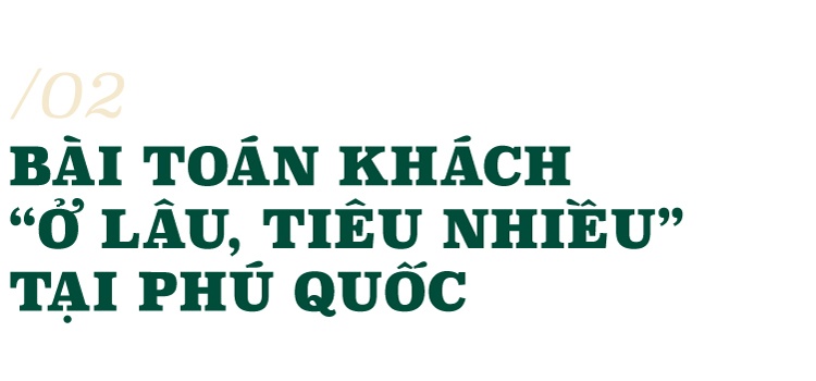 - Khách đến Phú Quốc hiện nay lưu trú trung bình khoảng 2,2 ngày. Chi tiêu với khách quốc tế khoảng 150-180 USD/ngày. Với khách nội địa, nếu tính cả chi phí máy bay, vé tàu, ăn ở thì chi tiêu trung bình 1,8-2 triệu đồng/ngày. Đối với những khu nghỉ dưỡng cao cấp thì tuỳ theo nhu cầu của khách hàng, chi phí sẽ cao hơn.