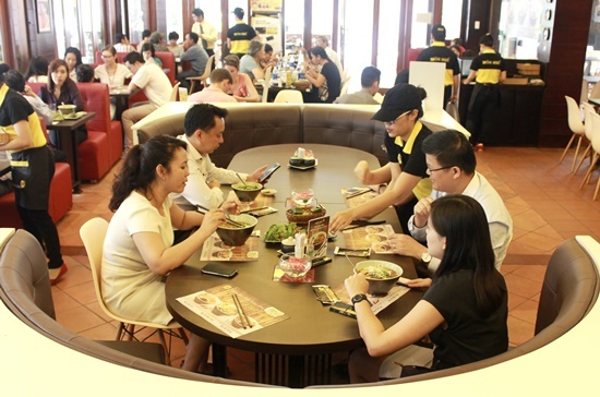 | Người sáng tạo ra cuộc thi ăn tô phở thưởng 1 triệu đồng cho biết, chuỗi nhà hàng phở Việt của anh sẽ xuất ngoại trong thời gian tới, và khách nước ngoài cũng có cơ hội "cá cược" với tô phở khổng lồ này. Ảnh: Zen Nguyễn. |