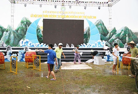 | Sân khấu đã sẵn sàng chờ lời tuyên bố quyết đấu của 16 cặp trâu. |