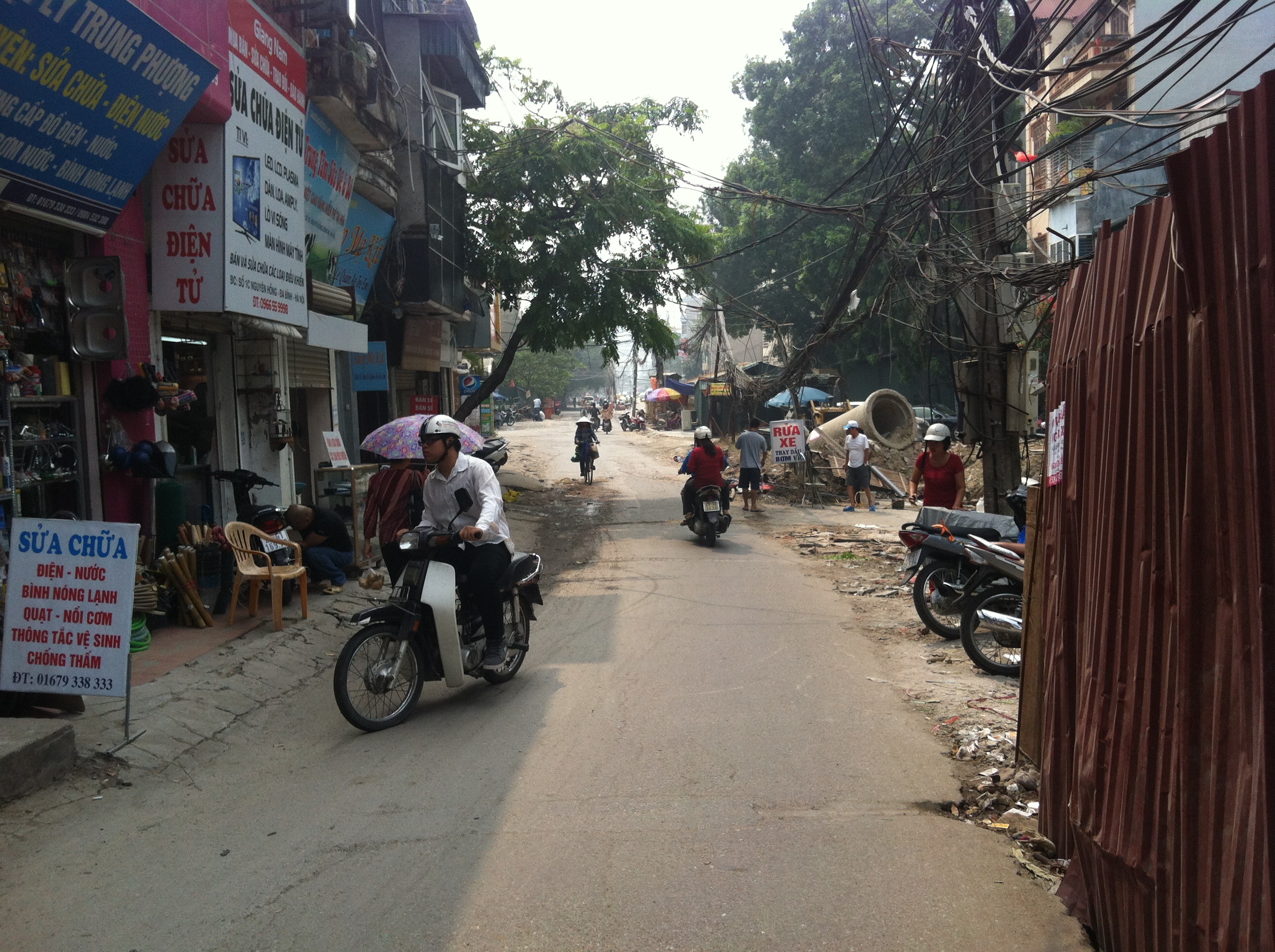 | Chưa có phương án di dời các gian hàng chợ Thành Công hiện tại sang mặt bằng chợ tạm trên đường Nguyên Hồng gần đó. Ảnh: Diệp Sa. |
