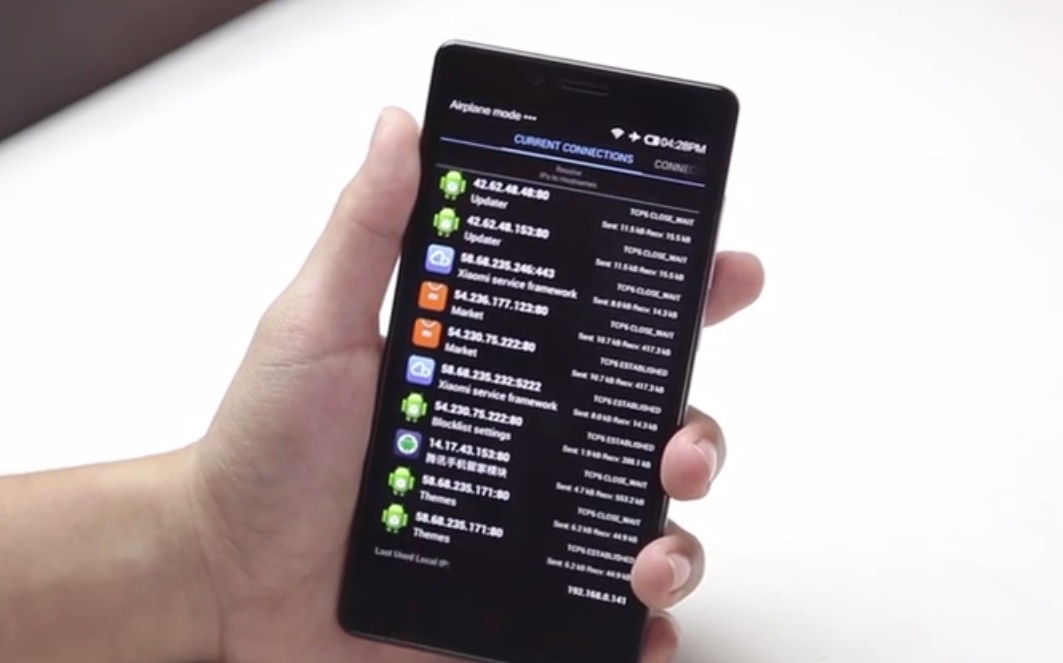 Bên cạnh đó, Kenny Li cũng cho biết anh đã gỡ bỏ tất cả các phần mềm, ứng dụng của Xiaomi cài sẵn trên chiếc Redmi Note, nhưng chiếc điện thoại này vẫn tiếp tục kết nối tự động đến máy chủ ở Bắc Kinh và tự động tải lên các gói tin.