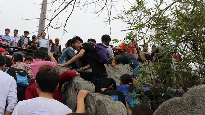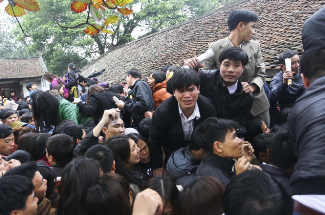 | Cảnh người dân chen lấn, giẫm đạp lên nhau tại buổi phát ấn đền Trần năm 2013. |