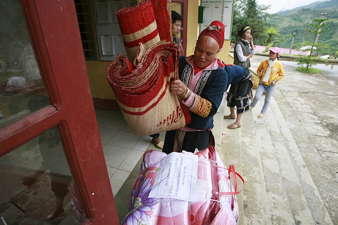 | Người dân được nhận cứu trợ chiều 6/9 tại UBND xã Bản Khoang. |