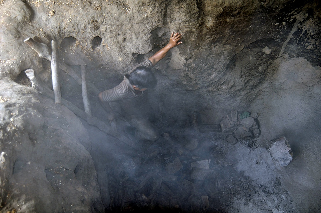 Thợ phá cửa hầm lò, chui vào trong để đưa than ra ngoài. "Trong lò thiếu ánh sáng, thiếu ôxy nên người không quen sẽ khó thở, không thể làm việc. Nhiệt độ luôn ở mức 50 đến 60 độ C, có lò lên tới 80 độ C. Những người thu hoạch than phải liên tục thay phiên nhau xuống hầm", anh Phan Đình Trung cho biết.