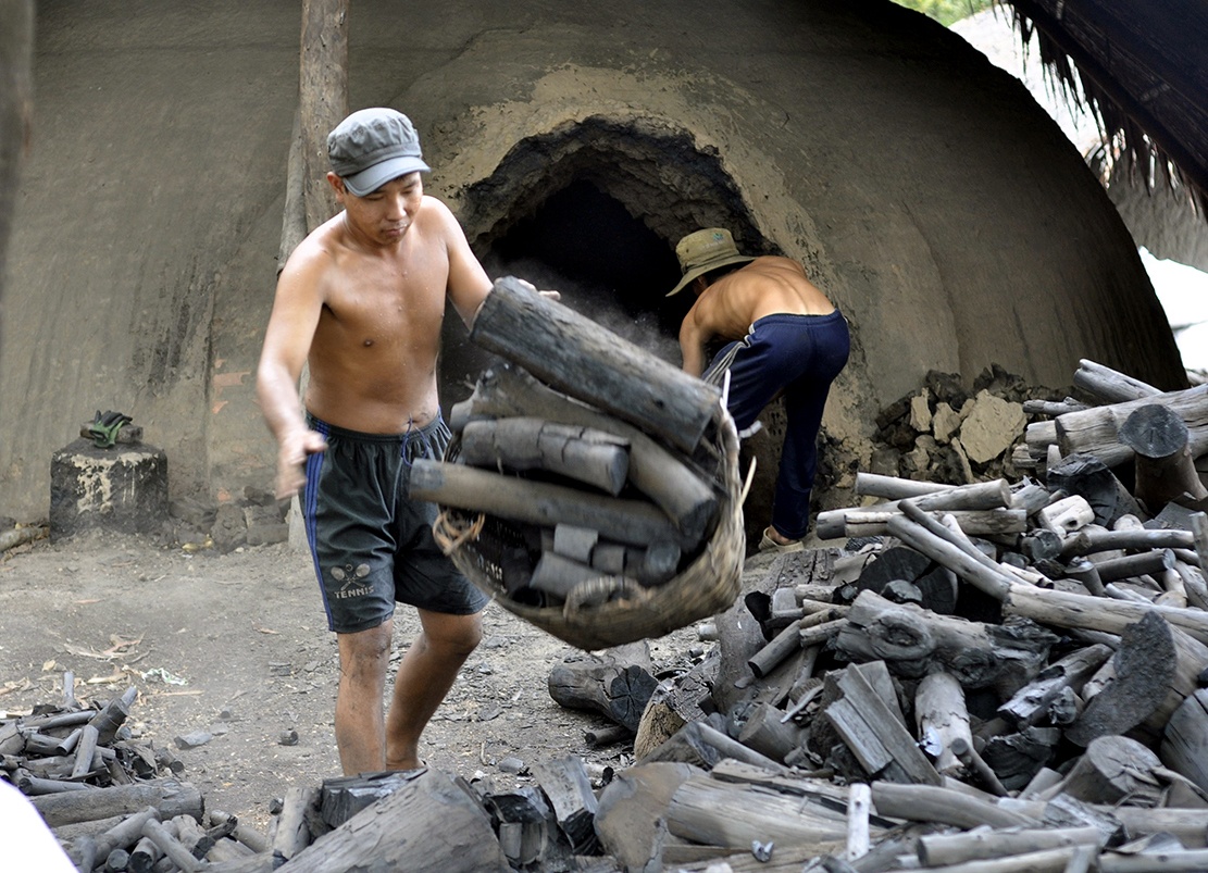 "Cứ 2 giờ là phải châm lửa 1 lần để duy trì nhiệt độ. Việc này kéo dài từ khi bắt đầu đốt đến khi than chín", một thợ lò nói.