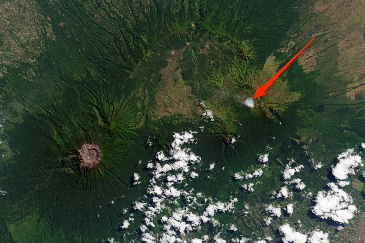 Hồ axit lớn nhất thế giới ra đời từ miệng núi lửa Kawah ijen ở Indonesia. Các nhà khoa học cho biết, màu ngọc lam của hồ xuất hiện do axit hydrochloric và axit sulfuric. Vệ tinh Landsat 8 chụp bức ảnh vào ngày 22/8/2013.