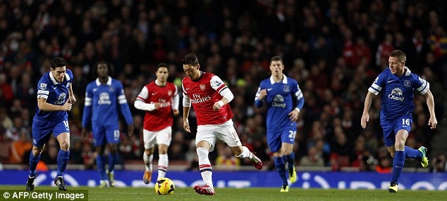| Mesut Oezil tiếp tục giữ vai trò chủ cột và tỏa sáng trong đội hình Arsenal. |