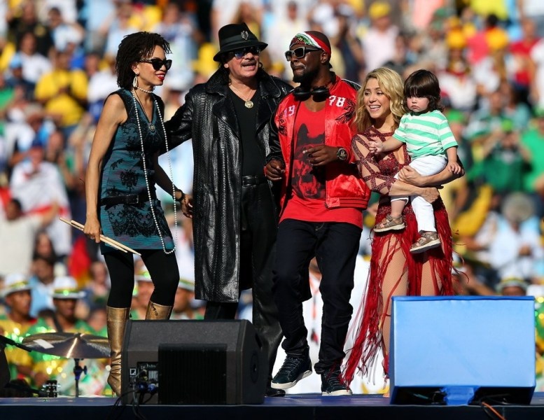 | Shakira bế con lên sân khấu cùng rất nhiều nghệ sĩ cháy hết mình trong lễ bế mạc. |