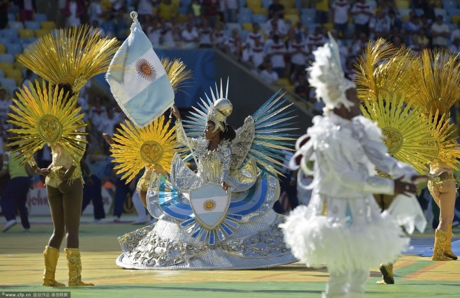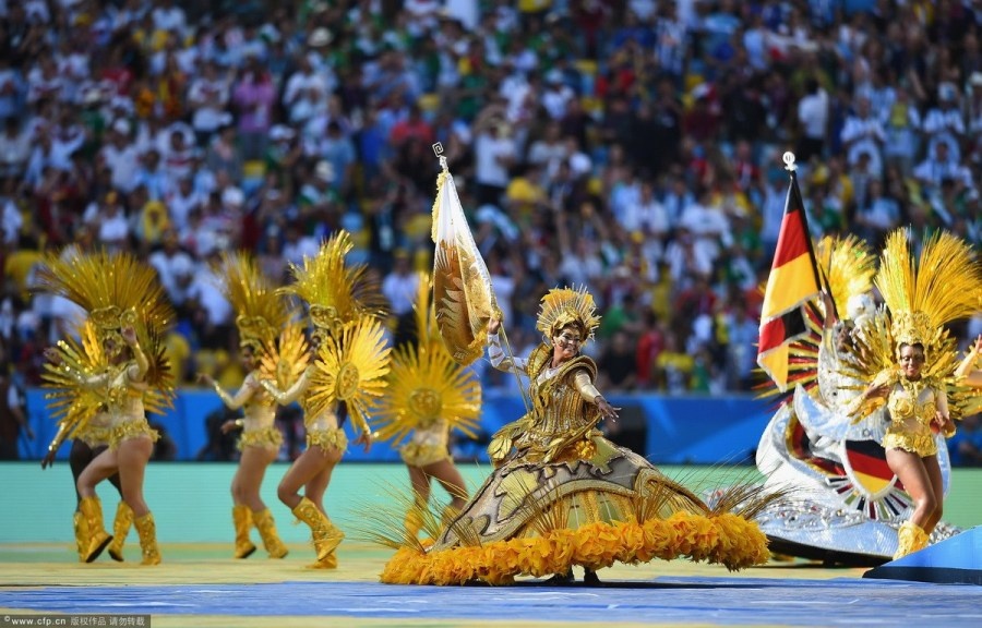 2 tiếng trước khi trận chung kết tranh cúp vô địch World Cup giữa Đức và Argentina, lễ bế mạc World Cup diễn ra trong không khí sôi động và đầy màu sắc. Trên sân vận động Maracana, Rio de Janeiro, gần 9 vạn khán giả đã ngồi chật kín khán đài để thưởng thức bữa tiệc âm nhạc, sắc màu đậm chất samba. |