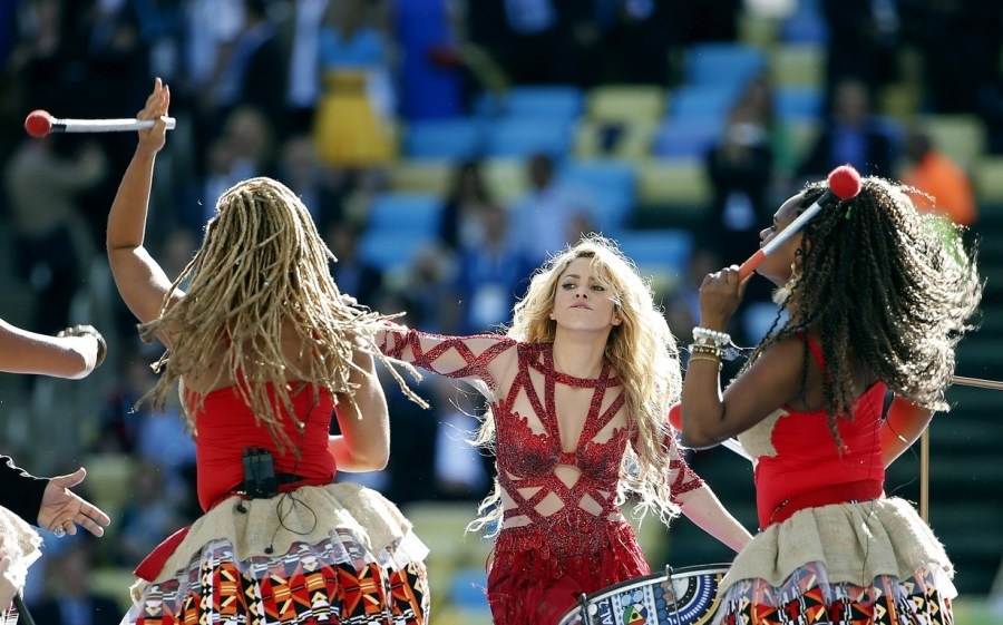 | Nữ ca sĩ người Colombia Shakira cháy hết mình với ca khúc La la la khiến bầu không khí tại sân Maracana như muốn nổ tung. |