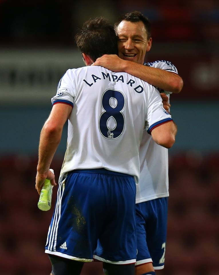 | Terry chia vui cùng Lampard sau khi trận đấu kết thúc. Đội trưởng của Chelsea cũng đã có một ngày thi đấu xuất sắc. |