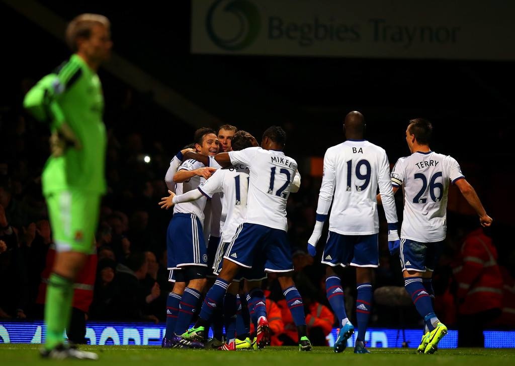 | Toàn đội chia vui cùng Lampard sau khi anh có được cú đúp. |