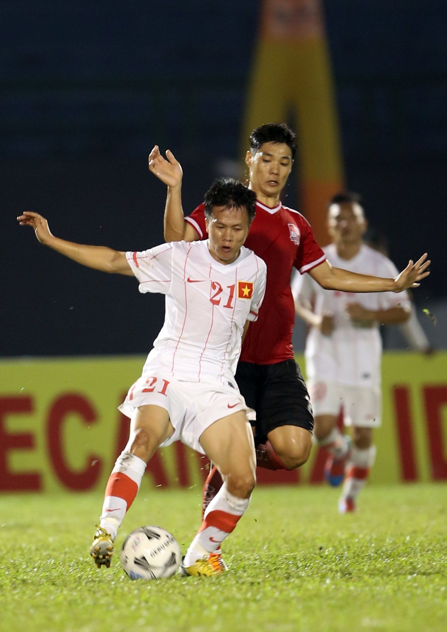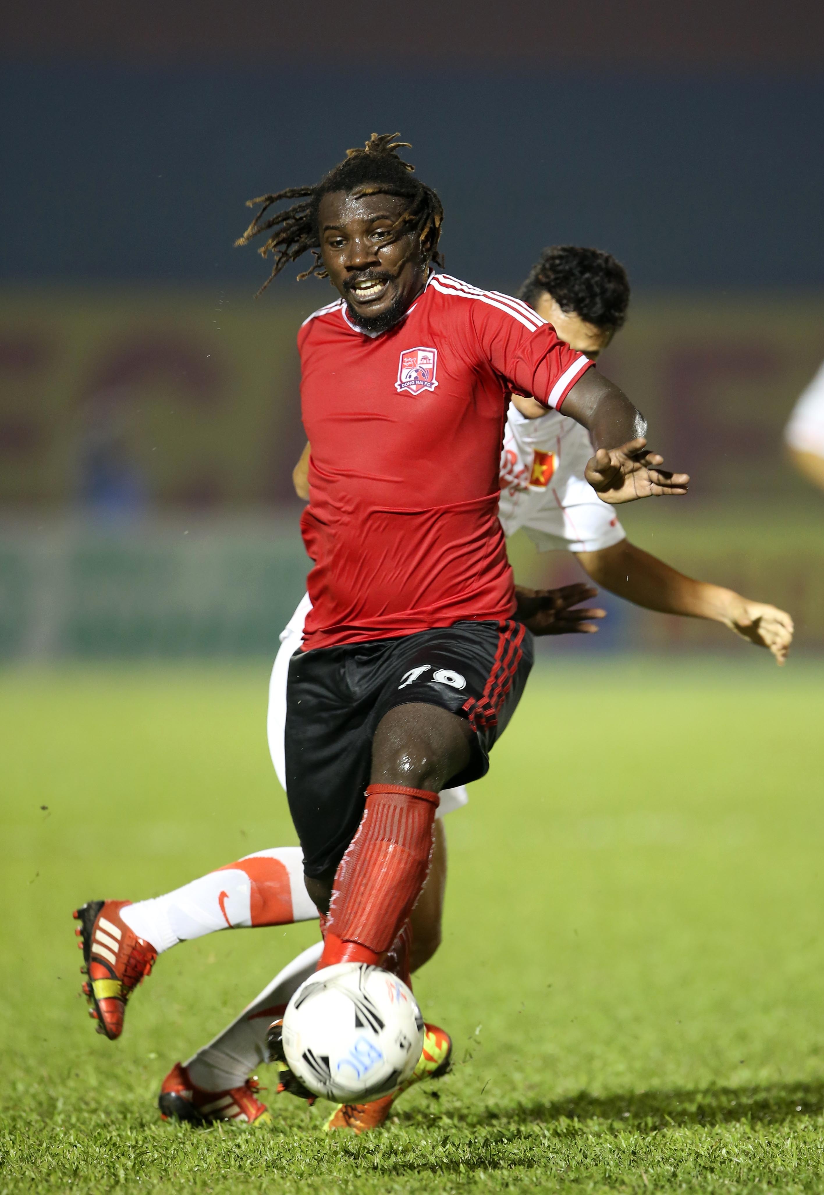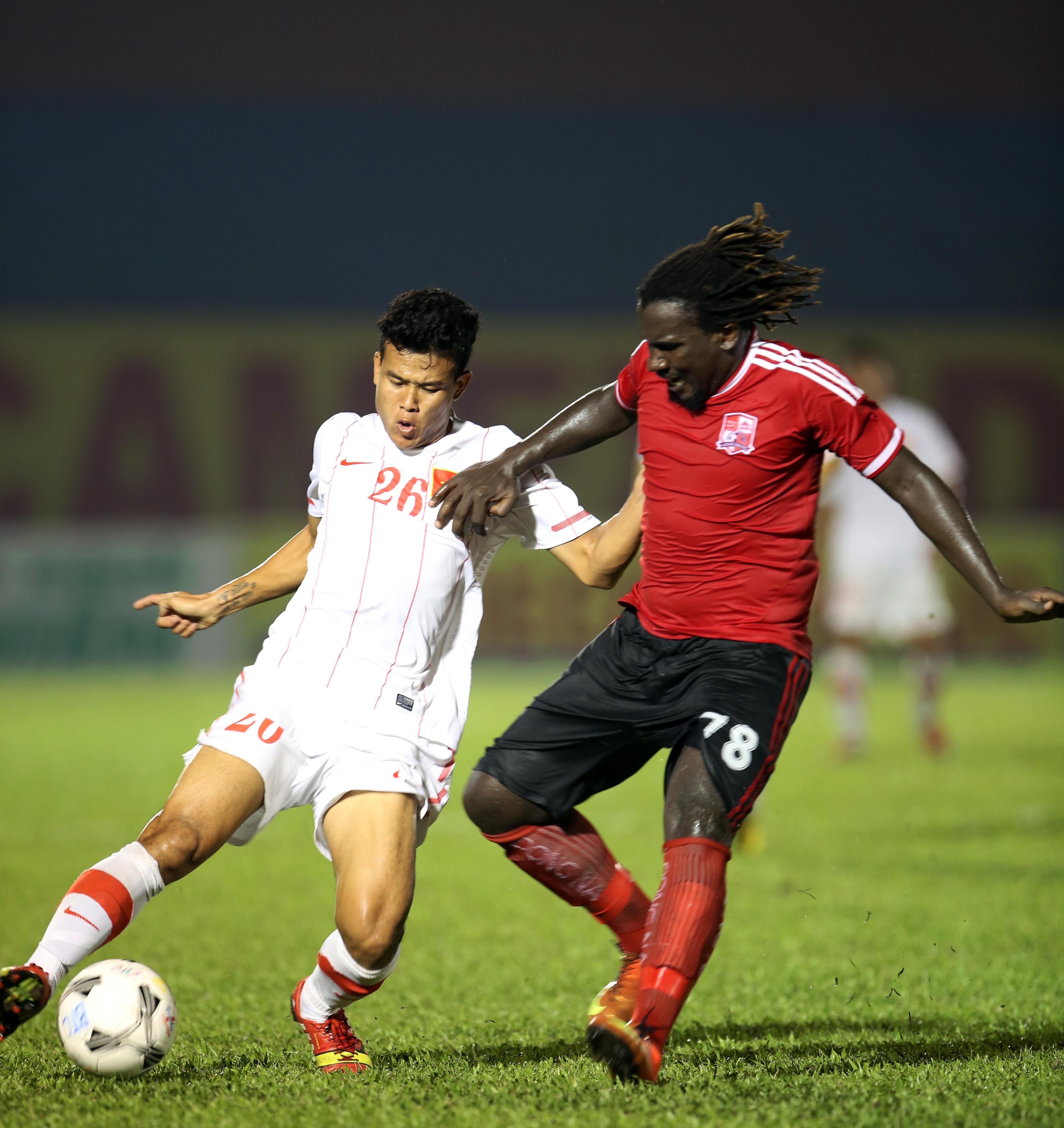 | Tuyển thủ Uganda Hasan Mawanda của Đồng Nai càn quét cực tốt ở giữa sân khiến những tiền vệ của Việt Nam không thực hiện được nhiều pha tấn công trung lộ hiệu quả. |
